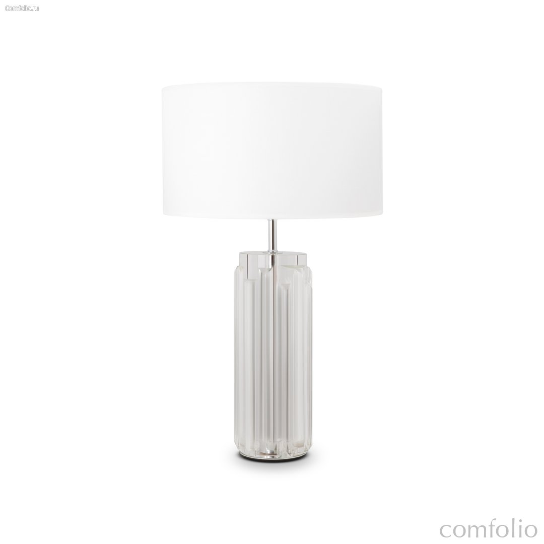 Металлическое основание - дополнено скульптурным литым стеклом в трех оттенках: прозрачном, дымчатом и пудрово-розовом. Хлопковый абажур белого цвета. Цоколь Е27.