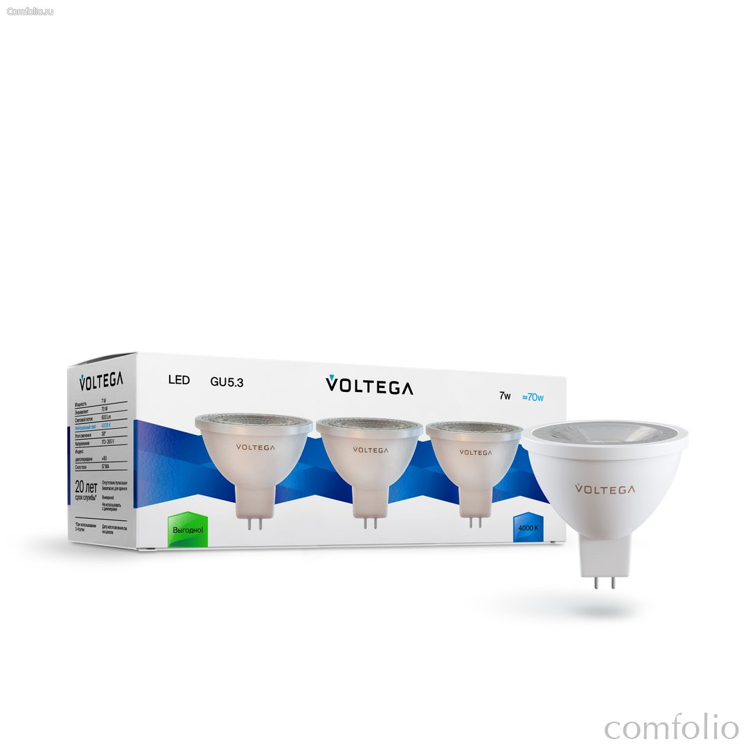Купить товар "Светодиодная лампа MR16 7Вт 4000K GU5.3 38° Набор 3 шт - Voltega" по выгодной цене вы можете в нашем интернет-магазине Comfolio.ru. Заказать товар можно круглосуточно прямо на сайте или позвонив с 10:00 до 20:00 (по московскому времени) нашим менеджерам. Информация о товаре "Светодиодная лампа MR16 7Вт 4000K GU5.3 38° Набор 3 шт - Voltega": описание, фото, характеристики, отзывы покупателей, инструкция и аксессуары - представлена для ознакомления.