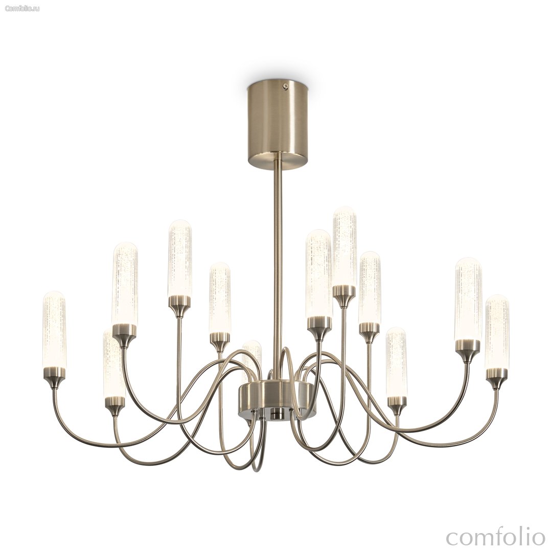 Арматура - металл в цвете латунь и никель. Основной акцент в дизайне люстр Alias сделан на акриловые плафоны, эффект пузырьков. Встроенный LED модуль 2700K. 2 дизайна подвесных светильников.
