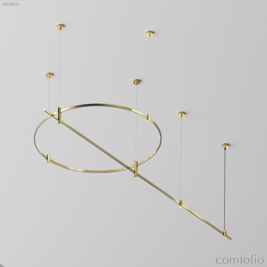 Готовая конструкция круглая + прямая двухуровневая на тросовых подвесах Hang без светильников и блока питания, латунь - Maytoni