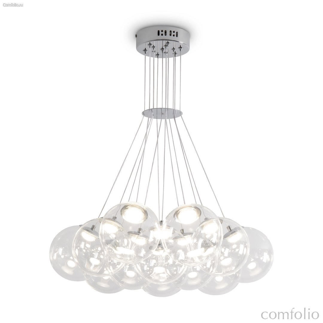 Арматура - металл (никель). Абажуры из дутого стекла с LED (2800K). Прозрачные плафоны подчеркивают современный дизайн. Высота 500-2500 мм. Серия станет ярким акцентом в вашем интерьере.