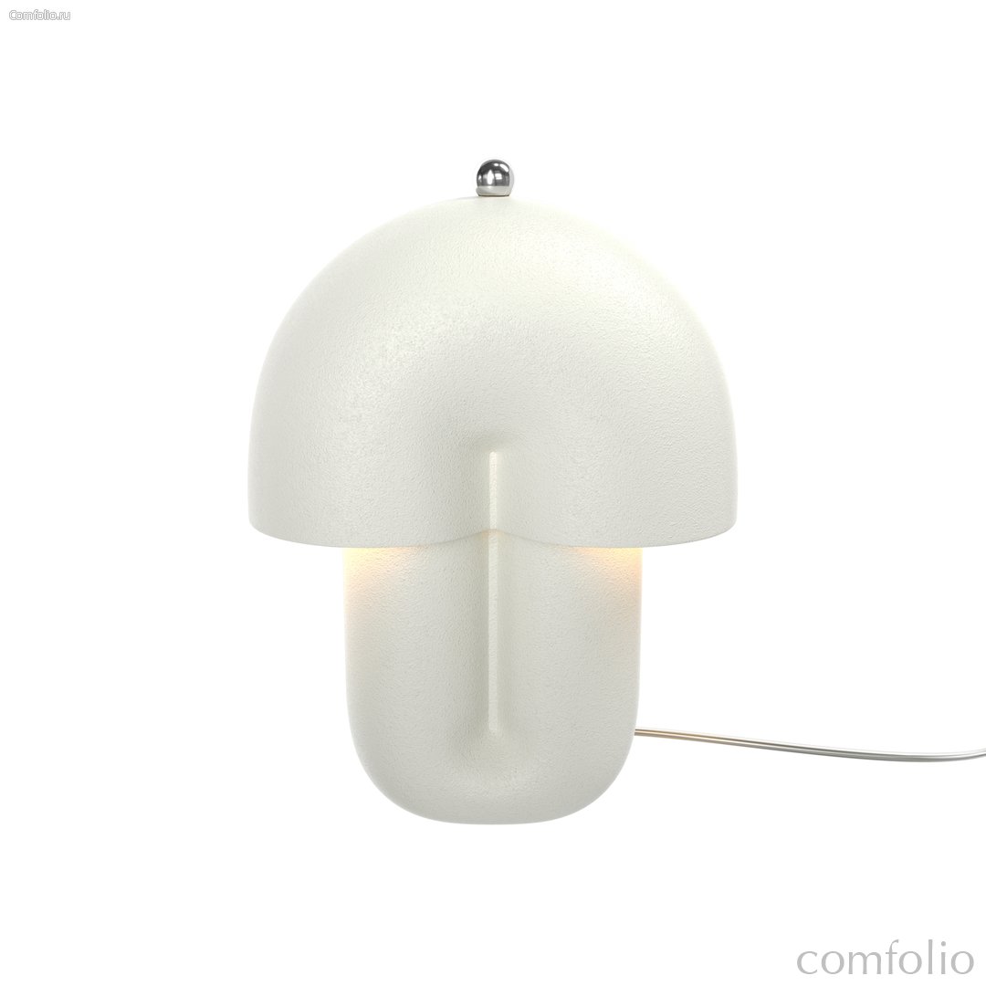 В основе дизайна — силуэт в форме «грибочка». Корпус светильника выполнен из натуральной керамики в трех цветах: шагреневый белый, глянцевые молочно-белый и нежный кашемир. LED-источник (3000К) с высокой световой отдачей (1400 лм) скрыт матовым акриловым рассеивателем и создает мягкий ореол под светильником. Сенсорный металлический шарик позволяет не только включать свет, но и регулировать его яркость. В комплекте предлагается два шара — в цвете сатинированной латуни или глянцевой платины.