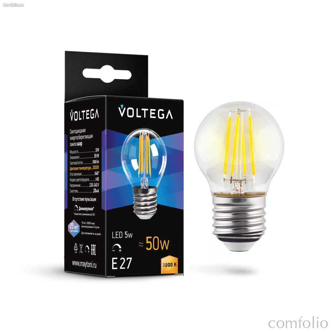 Цена товара Светодиодная лампа филамент шар 5Вт 3000K E27 340° диммируемая - Voltega указана в российских рублях. При заказе от 5990 рублей - доставка курьером по Москве и почтой по всей России осуществляется бесплатно. Бесплатная доставка при заказе от 5 990 р.