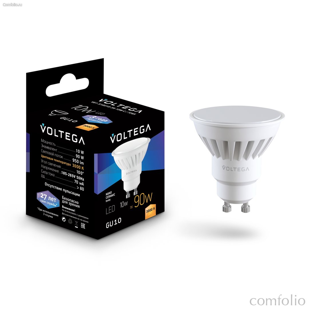 Купить товар "Светодиодная лампа керамикs MR16 10Вт 3000K GU10 100° - Voltega" по выгодной цене вы можете в нашем интернет-магазине Comfolio.ru. Заказать товар можно круглосуточно прямо на сайте или позвонив с 10:00 до 20:00 (по московскому времени) нашим менеджерам. Информация о товаре "Светодиодная лампа керамикs MR16 10Вт 3000K GU10 100° - Voltega": описание, фото, характеристики, отзывы покупателей, инструкция и аксессуары - представлена для ознакомления.
