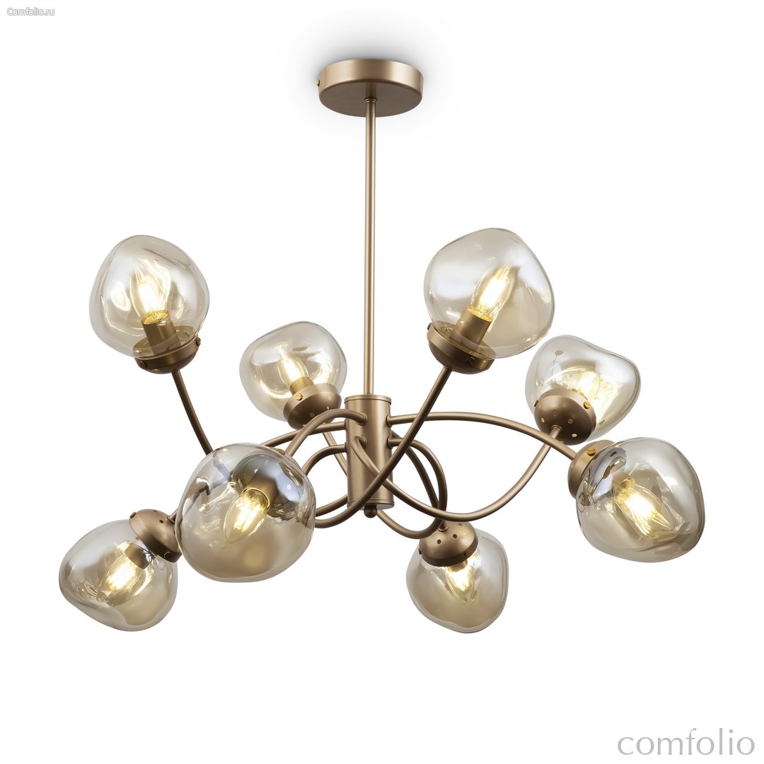 Динамика, скорость и ритм шумного мегаполиса отражены в сложных формах светильников Volani. Такой эффект достигается за счет конструктивных особенностей: рожки изогнуты под необычным углом, переплетаются друг с другом. Дизайнерское решение выгодно и с практической точки зрения: разнонаправленный световой поток обеспечивает равномерное и яркое освещение. Арматура из металла цвета матового золота идеально гармонирует с янтарными стеклянными плафонами. Теплая цветовая гамма добавит интерьеру уюта. Оригинальная форма плафонов поддерживает идею динамичного, движущегося дизайна. Наличие в серии люстр на 6, 8 и 10 ламп позволяет выбрать оптимальную мощность и интенсивность подсветки, исходя из размеров помещения. Завершить и дополнить световую инсталляцию поможет бра. Для интерьеров в стиле лофт, хай-тек, минимализм, mid-century modern серия Volani станет идеальным решением.