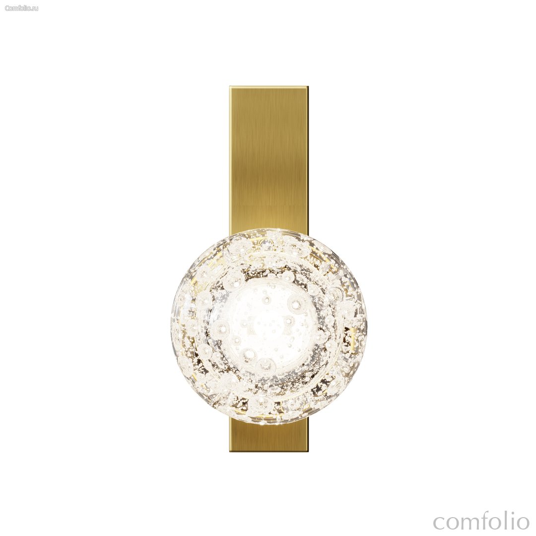 Плафон выполнен из стекла ручной работы с уникальными выдувными пузырьками. Арматура выполнена из алюминия в цвете сатинированной латуни. Сменный источник света с цоколем G9. Каждый светильник уникален благодаря индивидуальной технике ручного выдувания стекла. Обеспечивает мягкое рассеянное освещение, идеально подчеркивающее текстуру стекла. Предназначен для создания изысканных акцентов в интерьерах классического стиля и ар-деко. Рекомендуется для гостиных, спален, коридоров и ресторанов.
