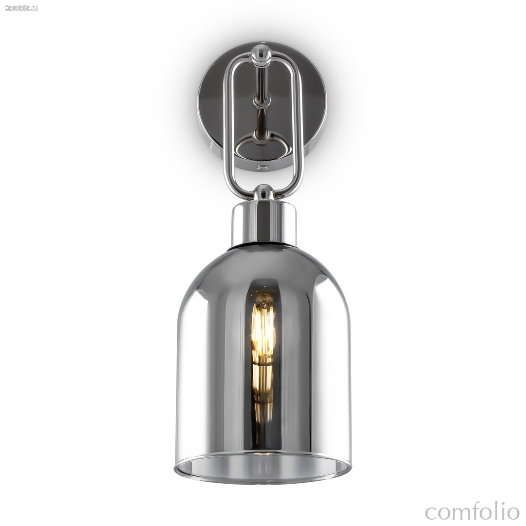 Хромированная металлическая арматура. Стеклянный плафон гальванизирован в тон арматуре. Трендовый арочный силуэт. В качестве источника света используется лампа с цоколем Е27.