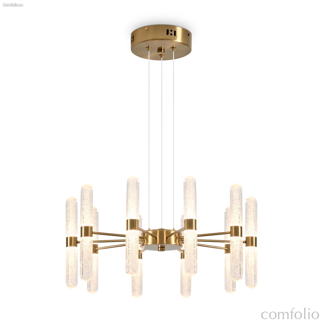 Арматура - металл в цвете латунь и никель. Основной акцент в дизайне люстр Alias сделан на акриловые плафоны, эффект пузырьков. Встроенный LED модуль 2700K. 2 дизайна подвесных светильников.