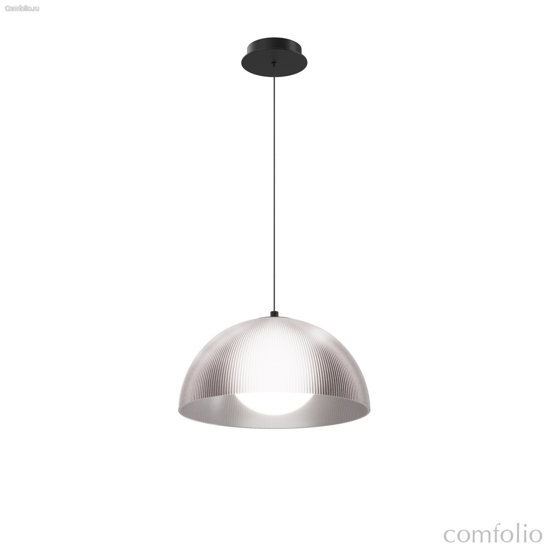 В серии представлены подвесные светильники двух диаметров абажура: 400мм и 600мм. Абажур из рельефного полупрозрачного акрила дымчатого цвета. Встроенный LED-источник с цветовой температурой 3000K. Свет мягко рассеивается матовым акрилом сферической формы. Высокий индекс цветопередачи CRI 90. Арматура из металла с черным покрытием сэнди". Длина провода регулируется до 3000 мм. Предназначены для основного рассеянного освещения. Универсальное применение в жилых и коммерческих интерьерах."