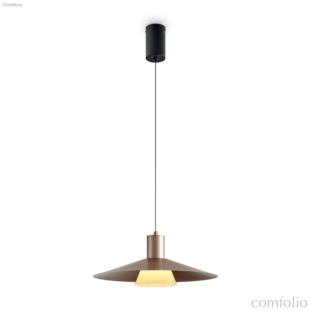 Арматура - металл. LED источник света (4000K). Подвесные светильники и бра настенные в золотом матовом оттенке плафонов и арматуры. Трансформируемые плафоны создают эффект аутдора.