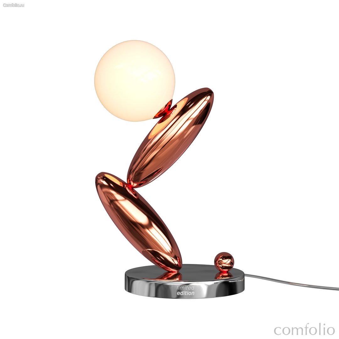 Серия переносит эстетику городских арт-объектов в приватное пространство. Глянцевые холодные оттенки металла (платина и черный никель) сочетаются с молочно-белым стеклом плафона. Сенсорный металлический шар регулирует яркость LED-источника (3000К). Зеркальная поверхность металла деликатно переотражает свет. В серии также представлена лимитированная версия в глянцевом медном цвете с платиновыми акцентами. Настольный светильник становится амбициозным акцентом в современных интерьерах.