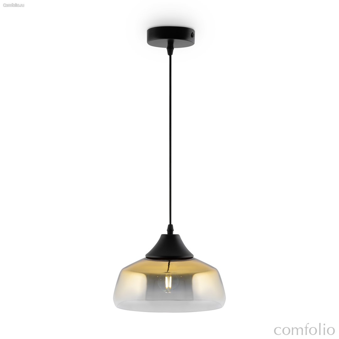 Металлическая арматура в черном цвете. Стеклянный плафон с мягким градиентным переходом оттенков. Цветовые решения – серый, янтарный. Трендовая обтекаемая форма. Источник света – лампа с цоколем E27.