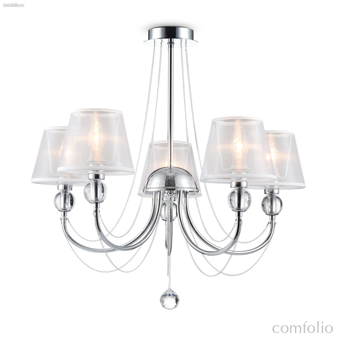 Светильники станут украшением интерьера, придадут ему шарм. Арматура светильников - из металла, а абажуры – из прозрачной органзы и ПВХ. Каждый из светильников серии дополнен тонкими серебристыми цепочками, а основания рожков украшены стеклянными прозрачными шарами. Завершающий элемент дизайна светильников Beverly – это декоративные подвески.