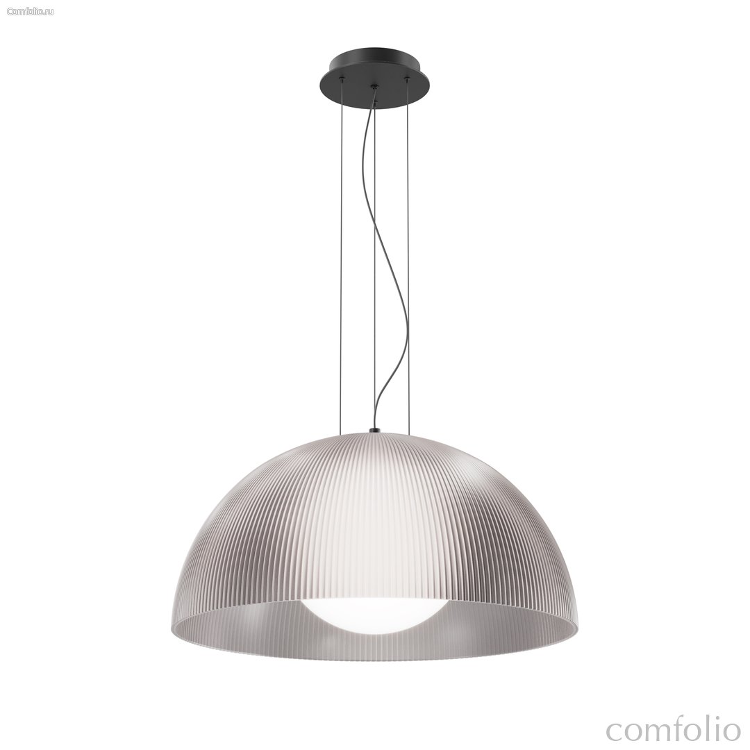 В серии представлены подвесные светильники двух диаметров абажура: 400мм и 600мм. Абажур из рельефного полупрозрачного акрила дымчатого цвета. Встроенный LED-источник с цветовой температурой 3000K. Свет мягко рассеивается матовым акрилом сферической формы. Высокий индекс цветопередачи CRI 90. Арматура из металла с черным покрытием сэнди". Длина провода регулируется до 3000 мм. Предназначены для основного рассеянного освещения. Универсальное применение в жилых и коммерческих интерьерах."