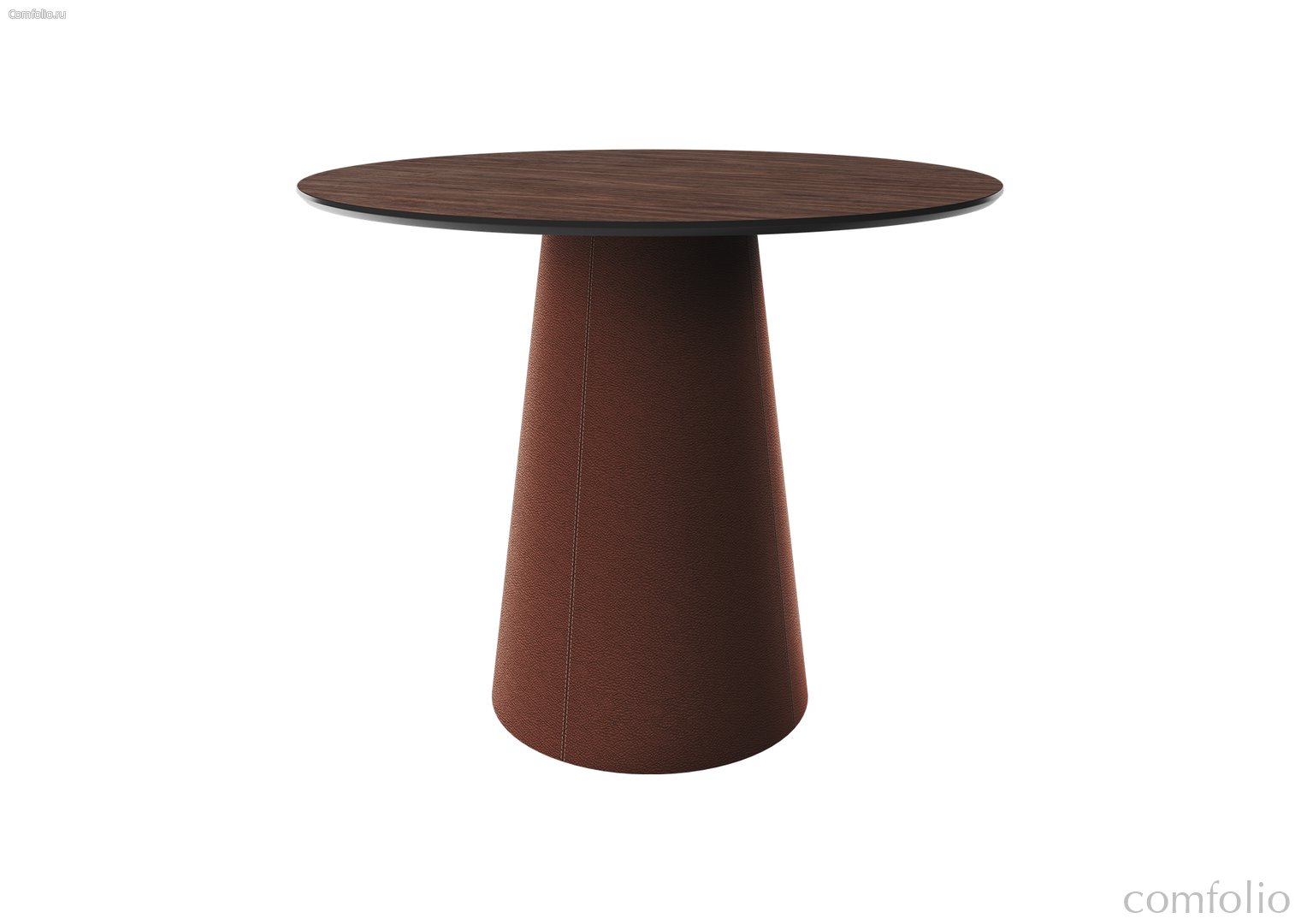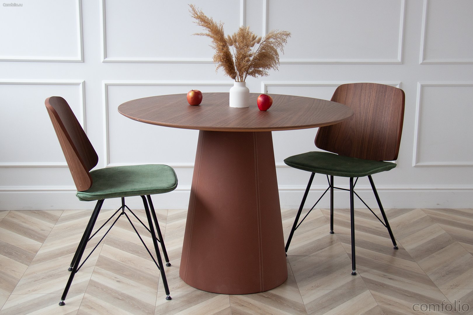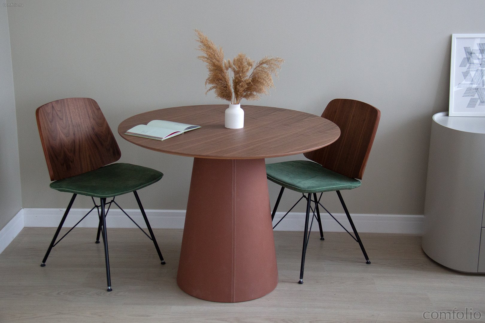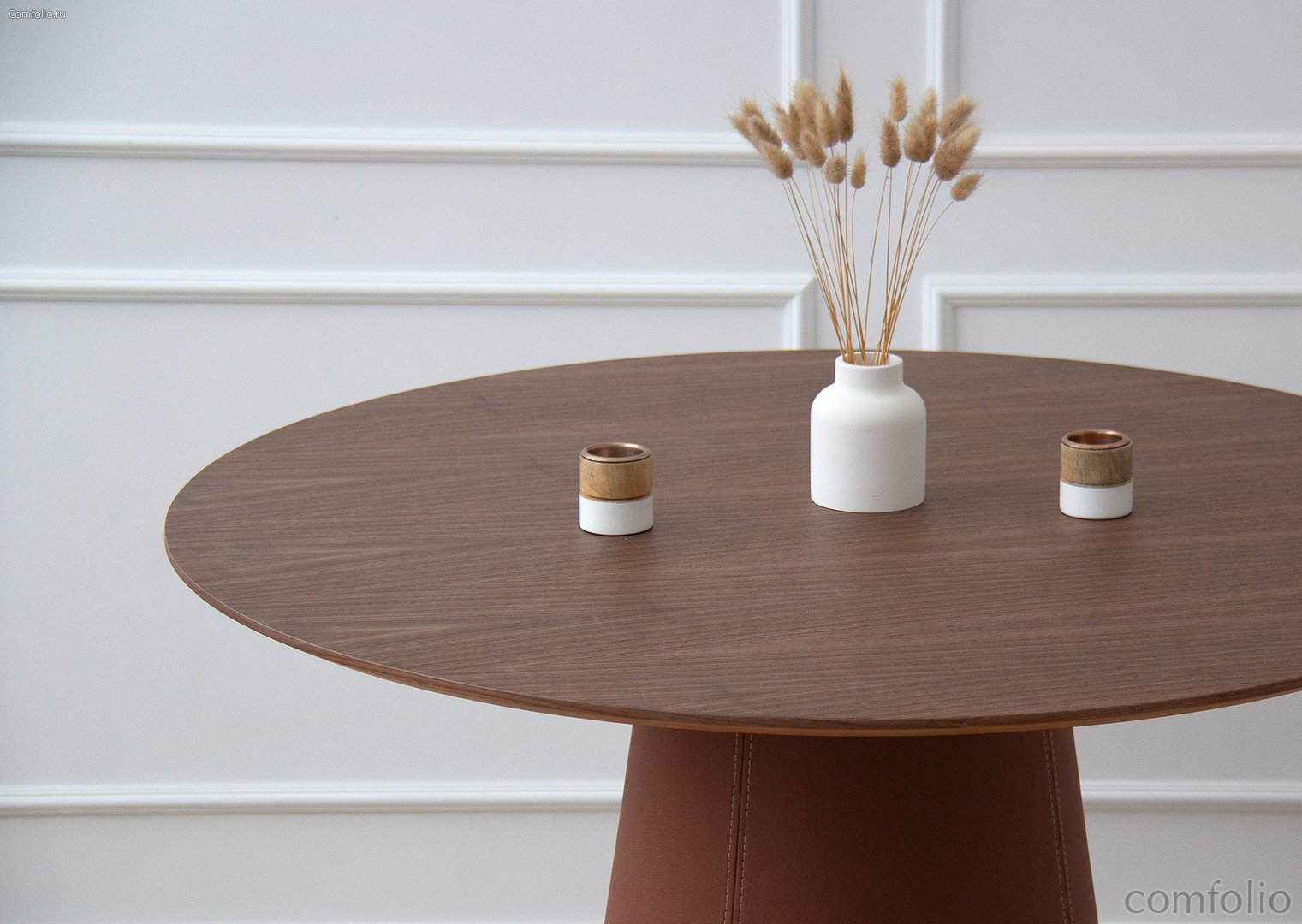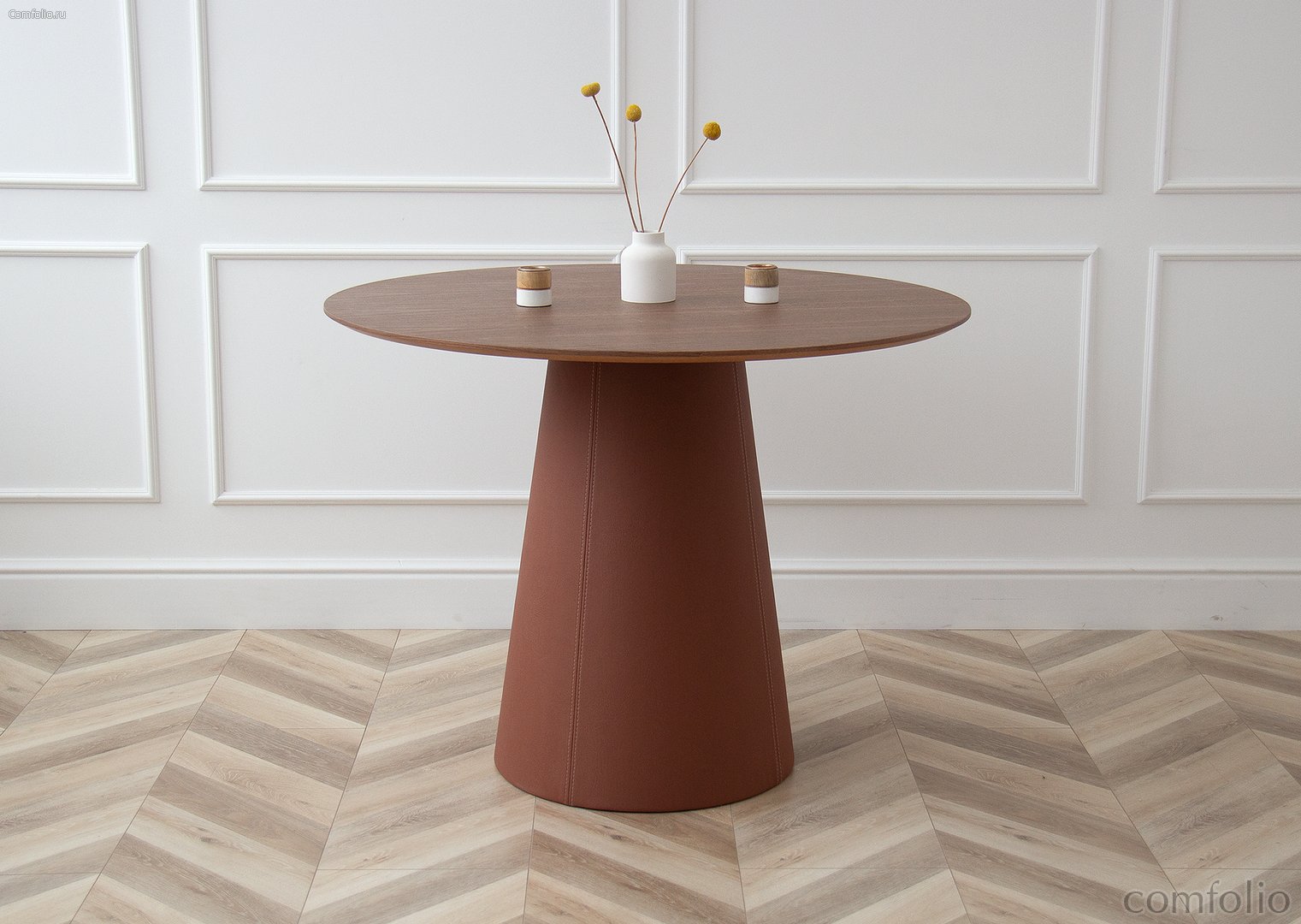 Стол обеденный Lagom D 100 см (орех / кирпичный, кожа) - Ellipse