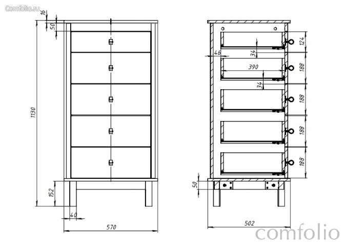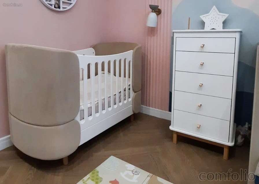 Комод classic с 5 ящиками имеет прочное основание из массива бука, корпус из безопасного мдф под эмалью Пять ящиков на бесшумных направляющих с доводчиками Ручки из натуральной кожи