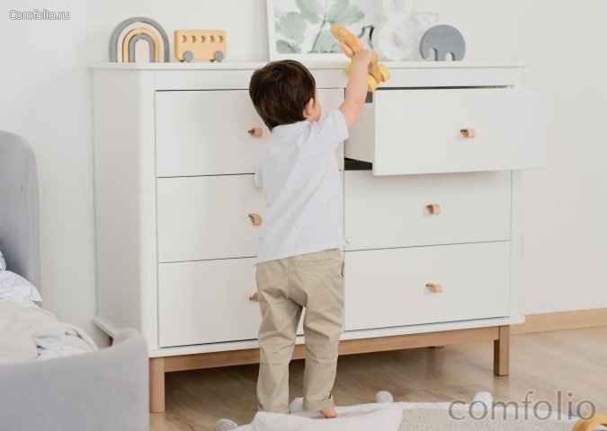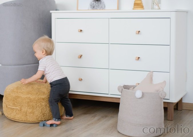 Комод classic с 6 ящиками имеет прочное основание из массива бука, корпус из безопасного мдф под эмалью. Шесть ящиков на бесшумных направляющих с доводчиками. Ручки из натуральной кожи.