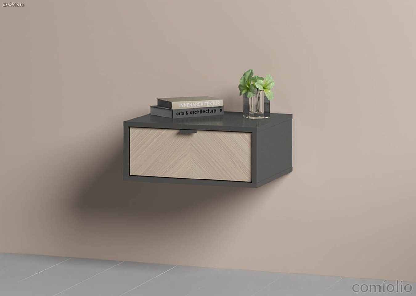 Тумба прикроватная Fjord 1 ящик подвесная (темно-серый) - Ellipse