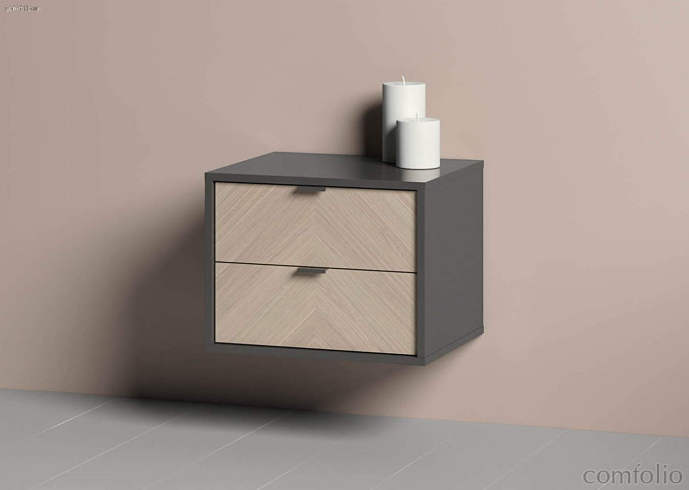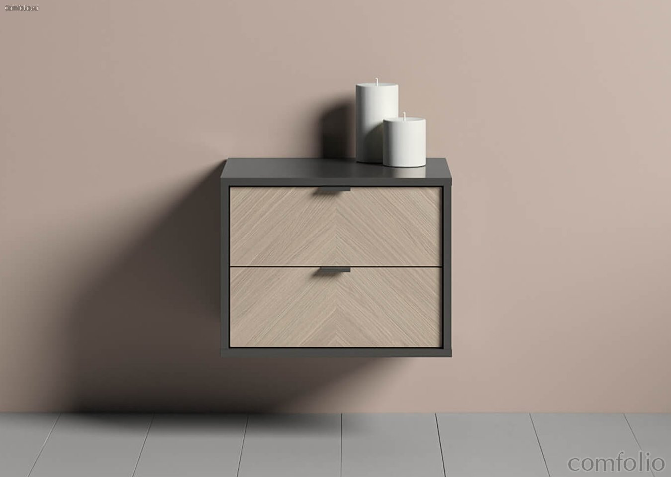 Тумба прикроватная Fjord 2 ящика подвесная (темно-серый) - Ellipse