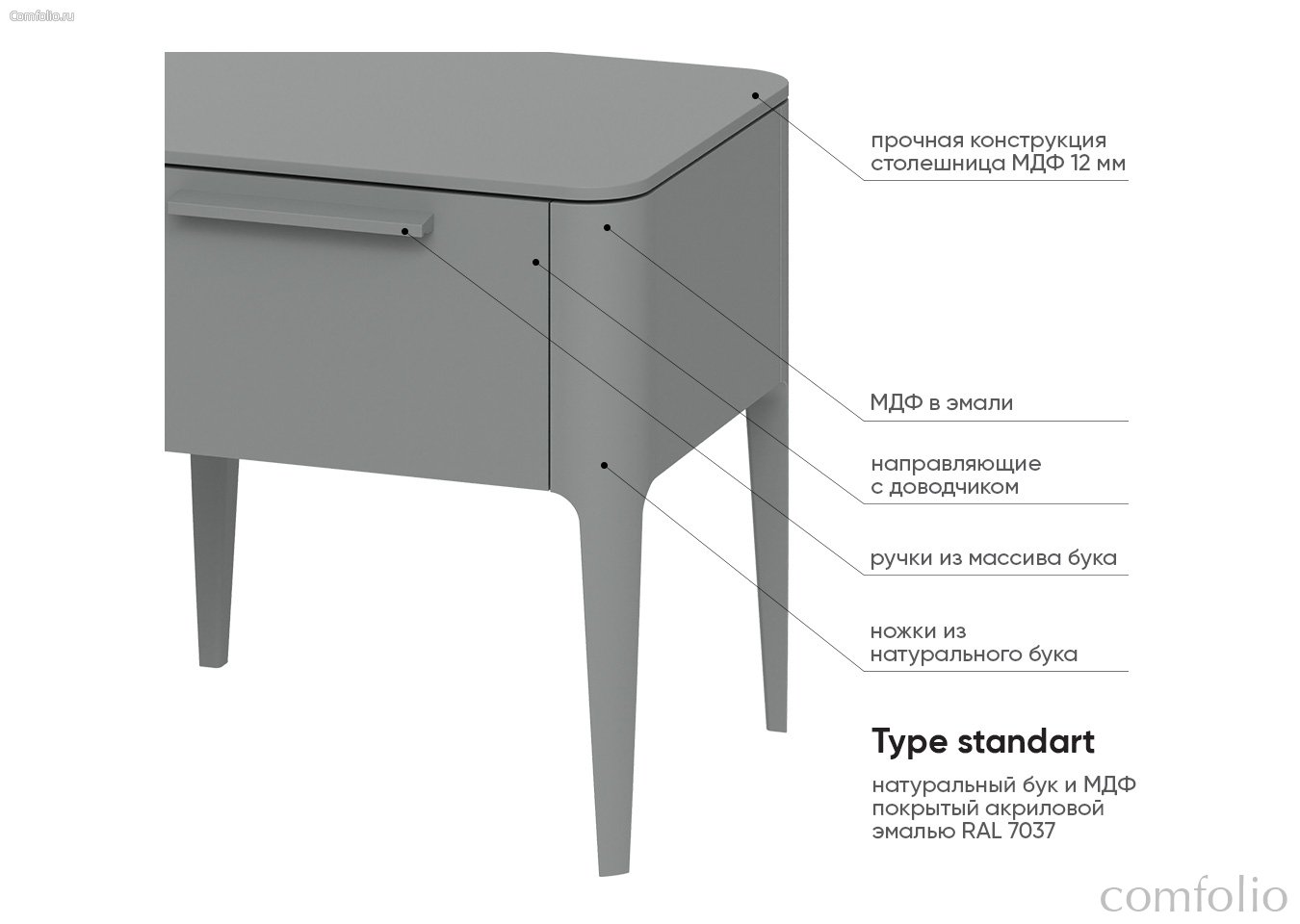 Покрытие эмаль, RAL 7037 Материал: дуб, МДФ, внутри ЛДСП