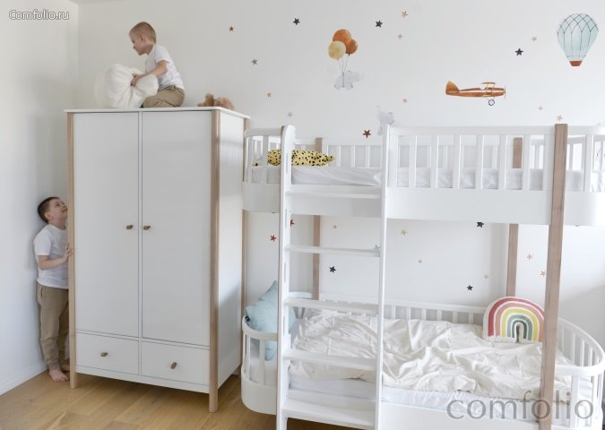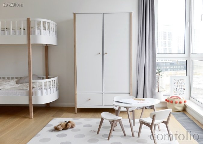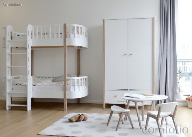 Двухстворчатый шкаф classic имеет два отделения с полками и штангой. Ручки на дверцах и выдвижных ящиках выполнены в виде петель из натуральной кожи.