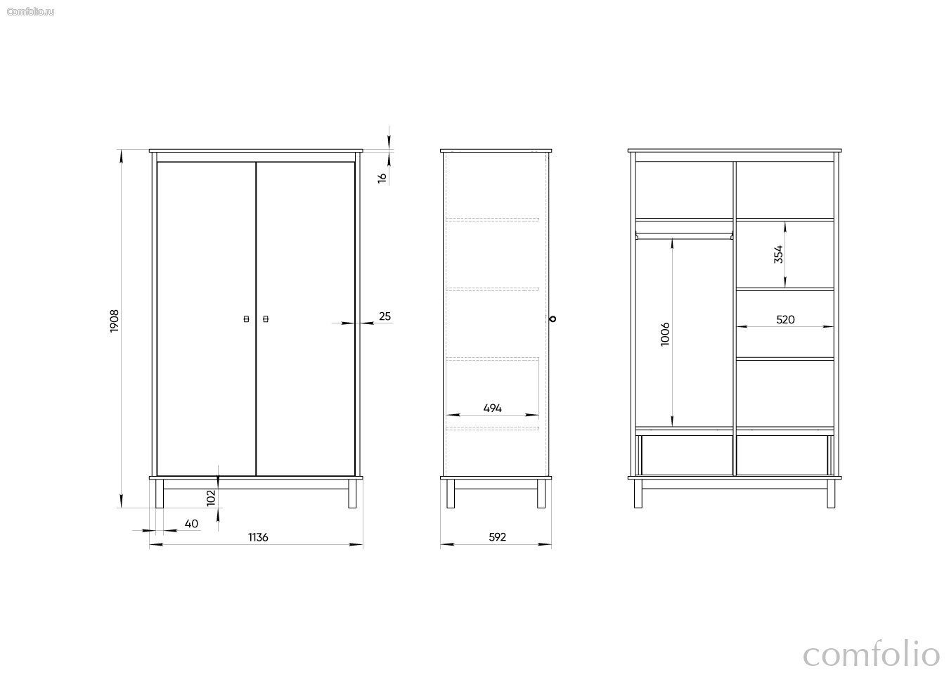 Высота: 191 см Ширина: 113,6 см Глубина: 59,2 см