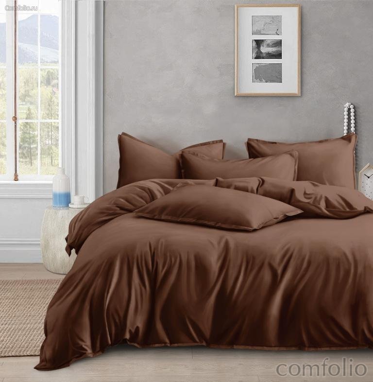 Комплект постельного белья АльВиТек ОCA-1-008-Молочный Шоколад 1.5 Сатин Однотонный+ нав-ки 70х70х2шт.