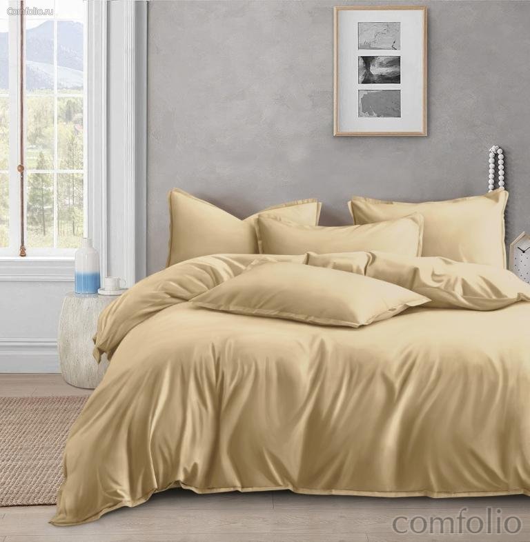 Комплект постельного белья АльВиТек ОCA-7-001-Бежевый Семейный Сатин Однотонный+ нав-ки 70х70х2шт.+ 50х70х2шт.