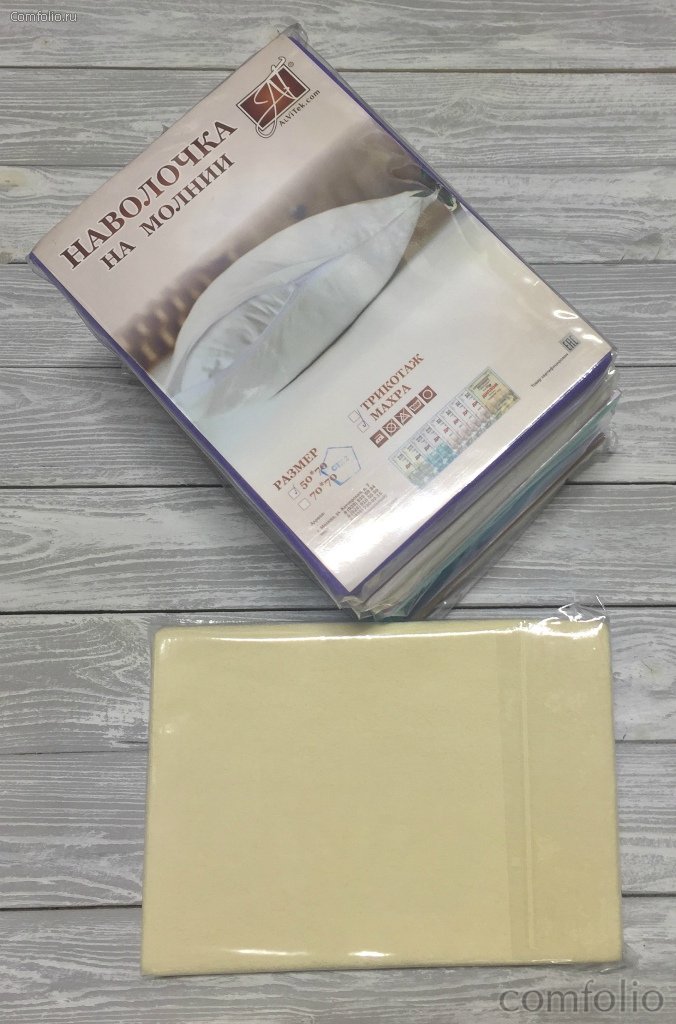 Наволочка АльВиТек Н-М-70-КРЕМ Кремовая на молнии ткань Махра 2шт.-70х70, 70x70