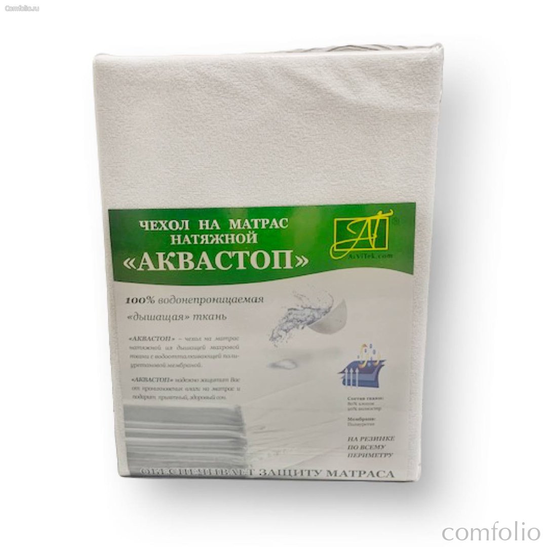 Чехол на резинке "АКВАСТОП" ткань непромокаемая дышащая Caress махра (80% хлопок, 20% полиэстр), борт 25 см, бирка, постер, в упаковке ПВХ