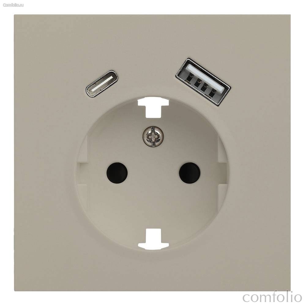Лицевая панель для розетки 2к+з с USB A+C Rikett 35637 LT, латте