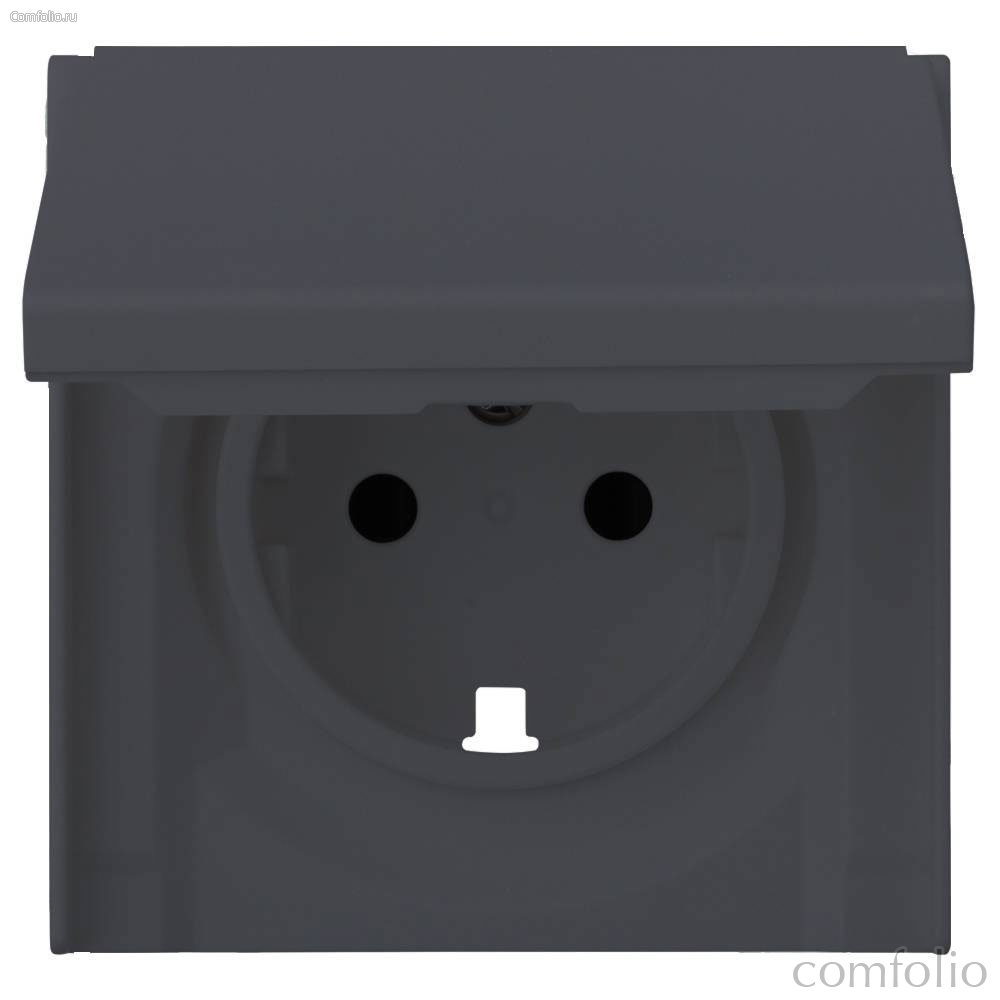 Лицевая панель для розетки 2к+з с крышкой Rikett 35634 BT, базальт