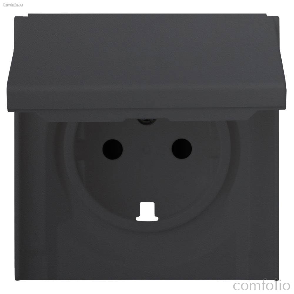 Лицевая панель для розетки 2к+з с крышкой Rikett 35634 MB, черный сатин