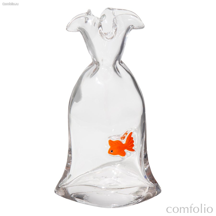 - Изготовлена из стекла с необычным декоративным элементом в виде золотой рыбки.