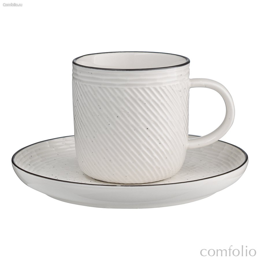 "Чайная пара из коллекции Contour идеально дополнит сервировку в средиземноморском стиле. Премиальная посуда из фарфора выполнена в стильном дизайне с яркими, но изящными контрастными элементами. Подходит для подачи чая, кофе и других горячих напитков.