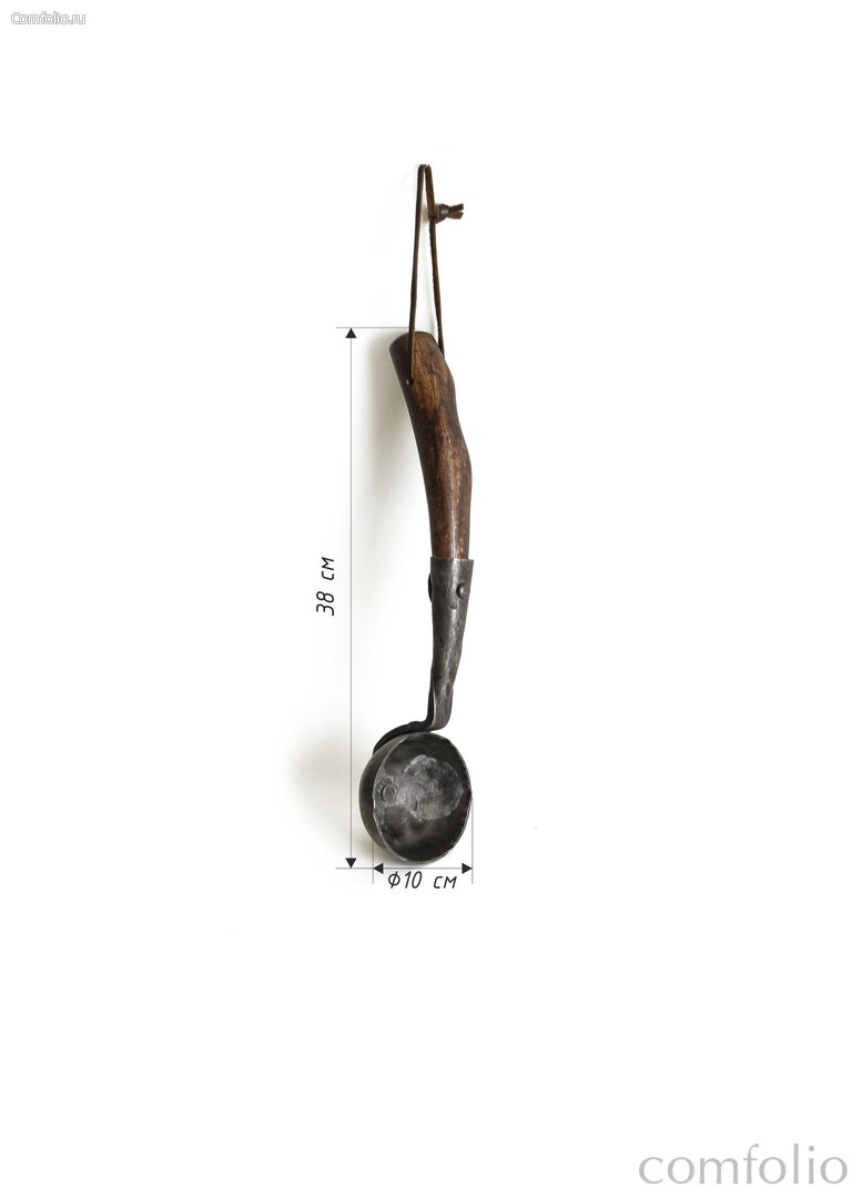 Кованый черпак станет украшением Вашей сауны. Удобная деревянная ручка с кожаным шнурком для подвеса и ковш ручной работы изготовлены нашими мастерами специально для Вас.Объём 200 мл, цвет ручки - светлый.