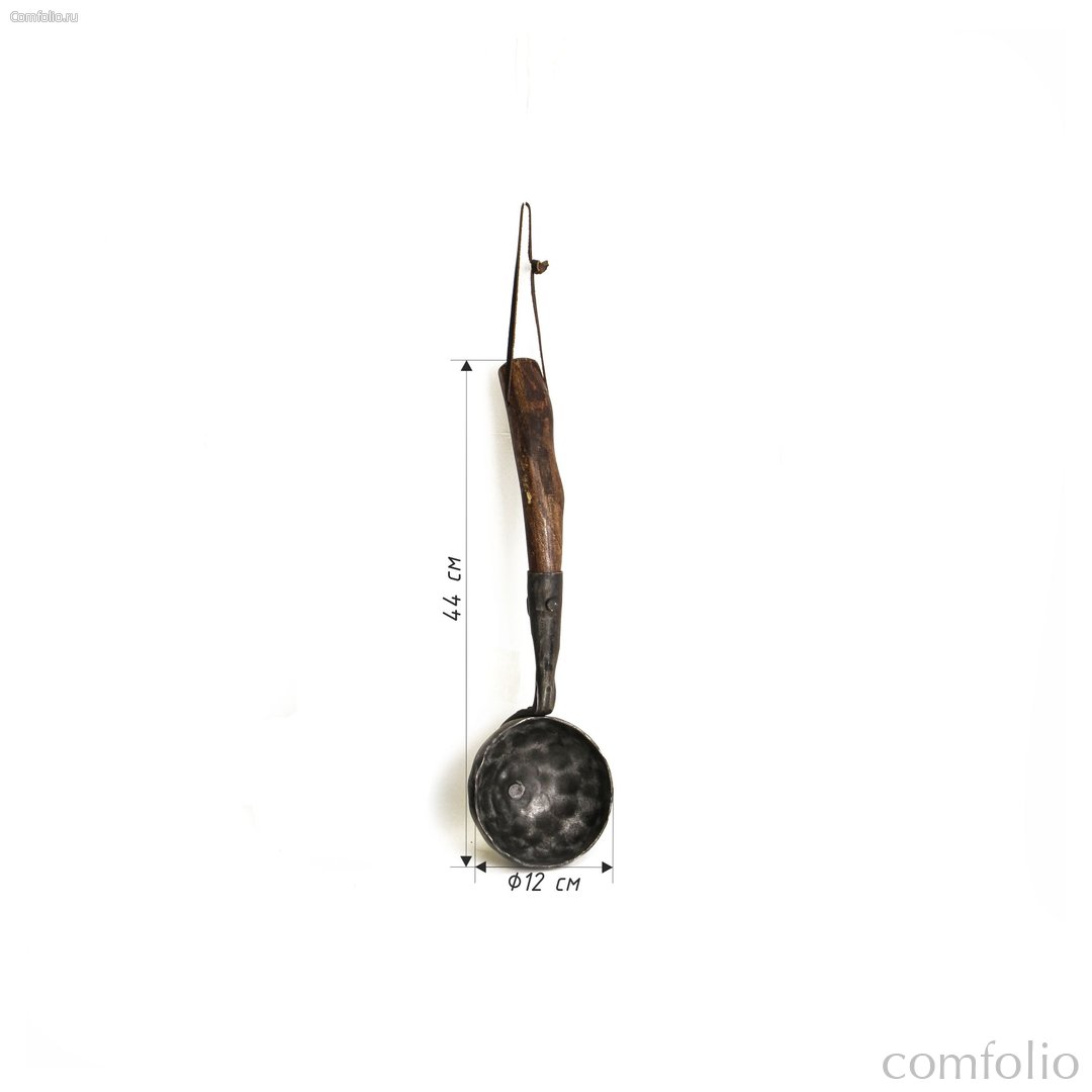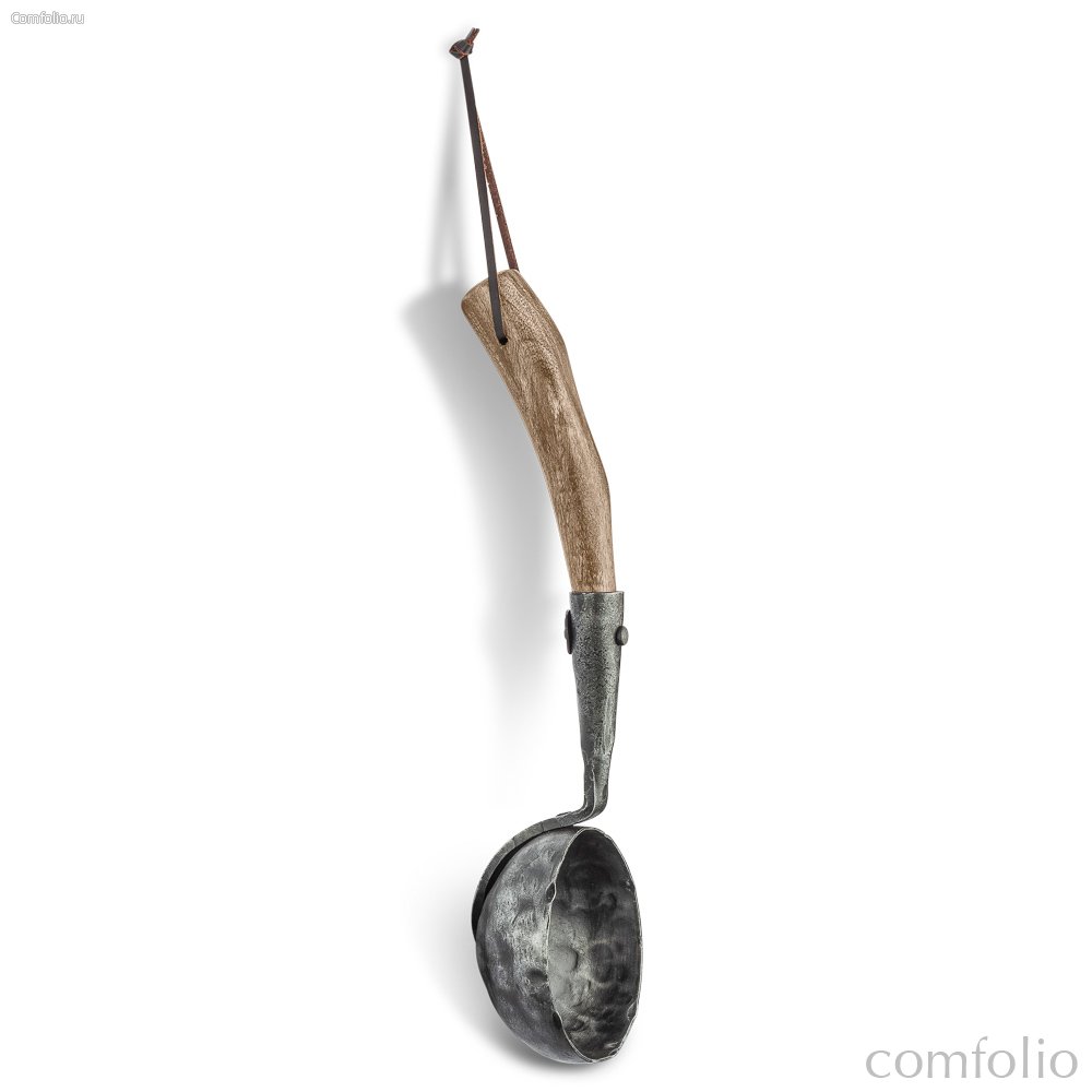 Кованый черпак ручной работы. Вместительный ковш, удобная деревянная ручка с кожаным шнуром для подвеса. Станет несомненным украшением Вашей сауны.Объём 300 мл, цвет ручки - светлый.