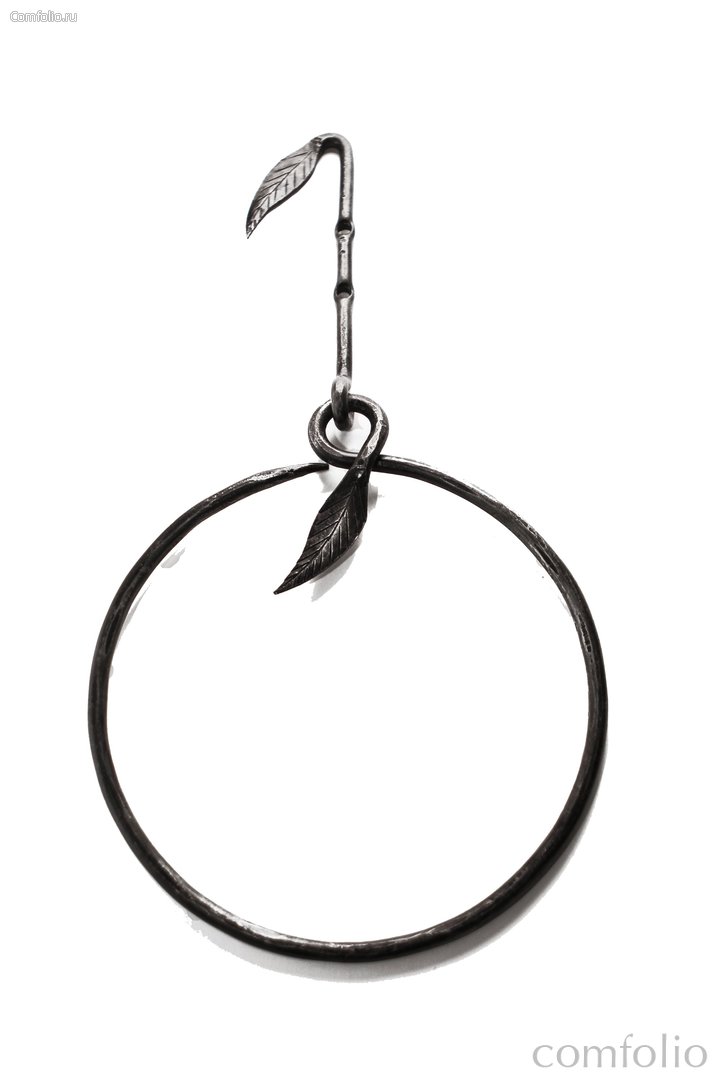 Небольшое Кованое кольцо с нежным лепестком ручной работы станет украшением вашей ванной комнаты.На него Вы можете повесить туалетное полотенце, шарфик, ремешок.... да мало ли чего. Есть такое же кольцо большего размера. В паре они будут смотреться очень гармонично
