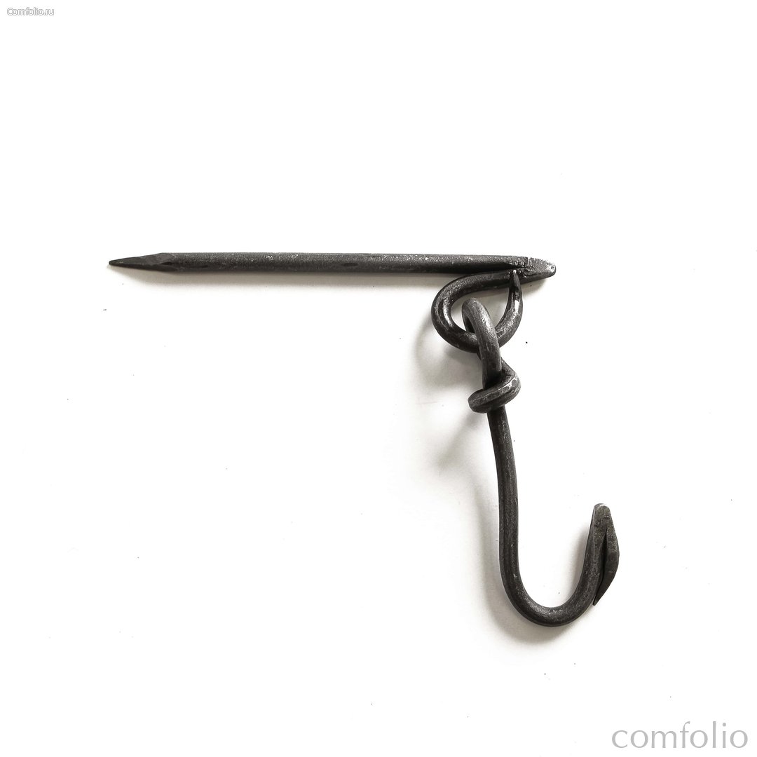 Изящный универсальный подвесной крючок украсит любое помещение. Ковка, ручная работа, стиль "под старину". Удобен для подвеса банных веников, разнотравья. Способ крепления - забивной штырь.