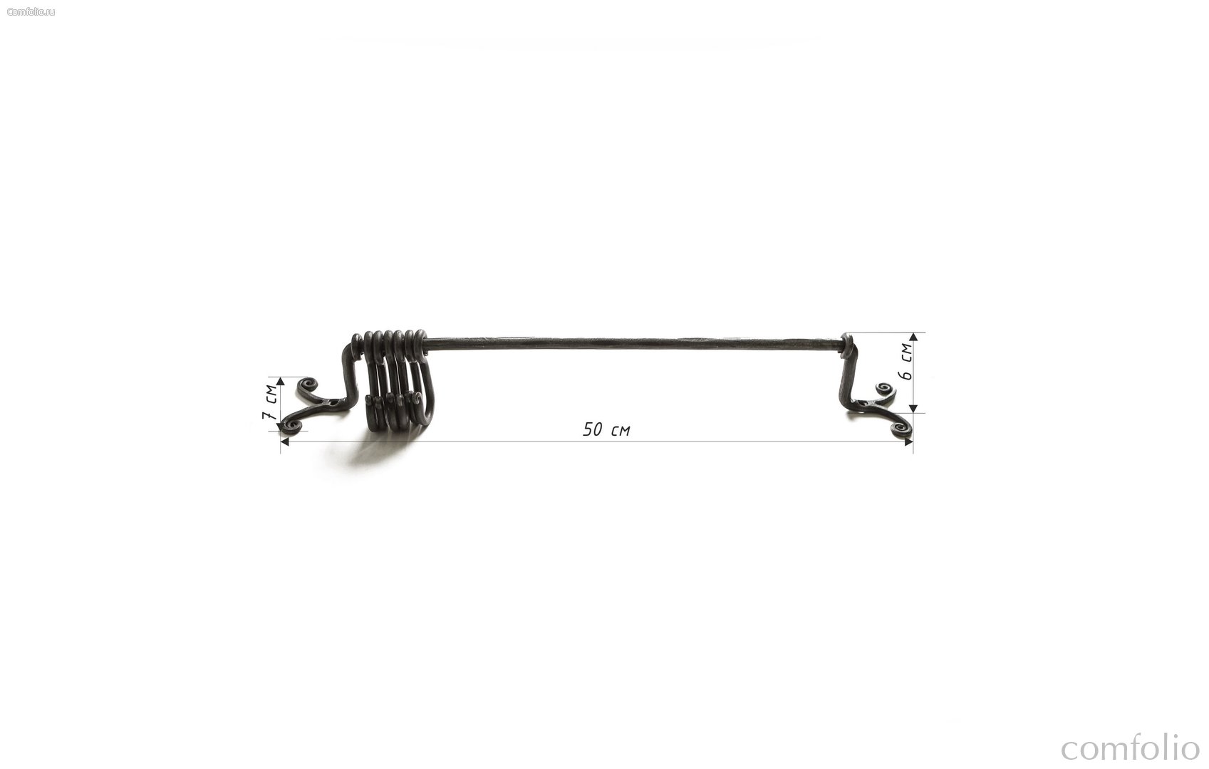 Вешалка настенная с шестью подвижными крючками - незаменимая помощница в интерьере кухни, гостиной, кафе. Сделанная вручную нашими мастерами методом горячей ковки она отличается необыкновенным изяществом и легкостью. Подвижные крючки позволяют навесить предметы любого размера и количества, будь-то чашки, полотенца, и другие бытовые и столь необходимые мелочи. На концах вешалка украшена двойным завитком. Уникальное покрытие защищает вешалку от коррозии. 100% ручная работа!