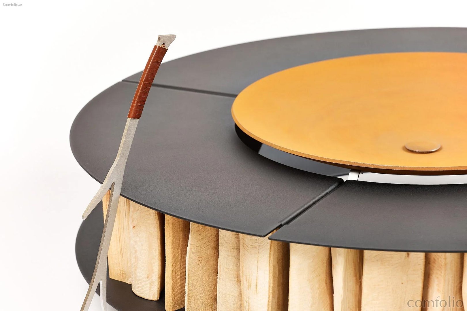 Фурнитура и эмблема выполнены из нержавеющей стали, а специальные накладки на опорах предохраняют поверхность, на которой установлен очаг. Каждая деталь продумана так, чтобы Lounge сохранял выразительность и функциональность долгие годы.