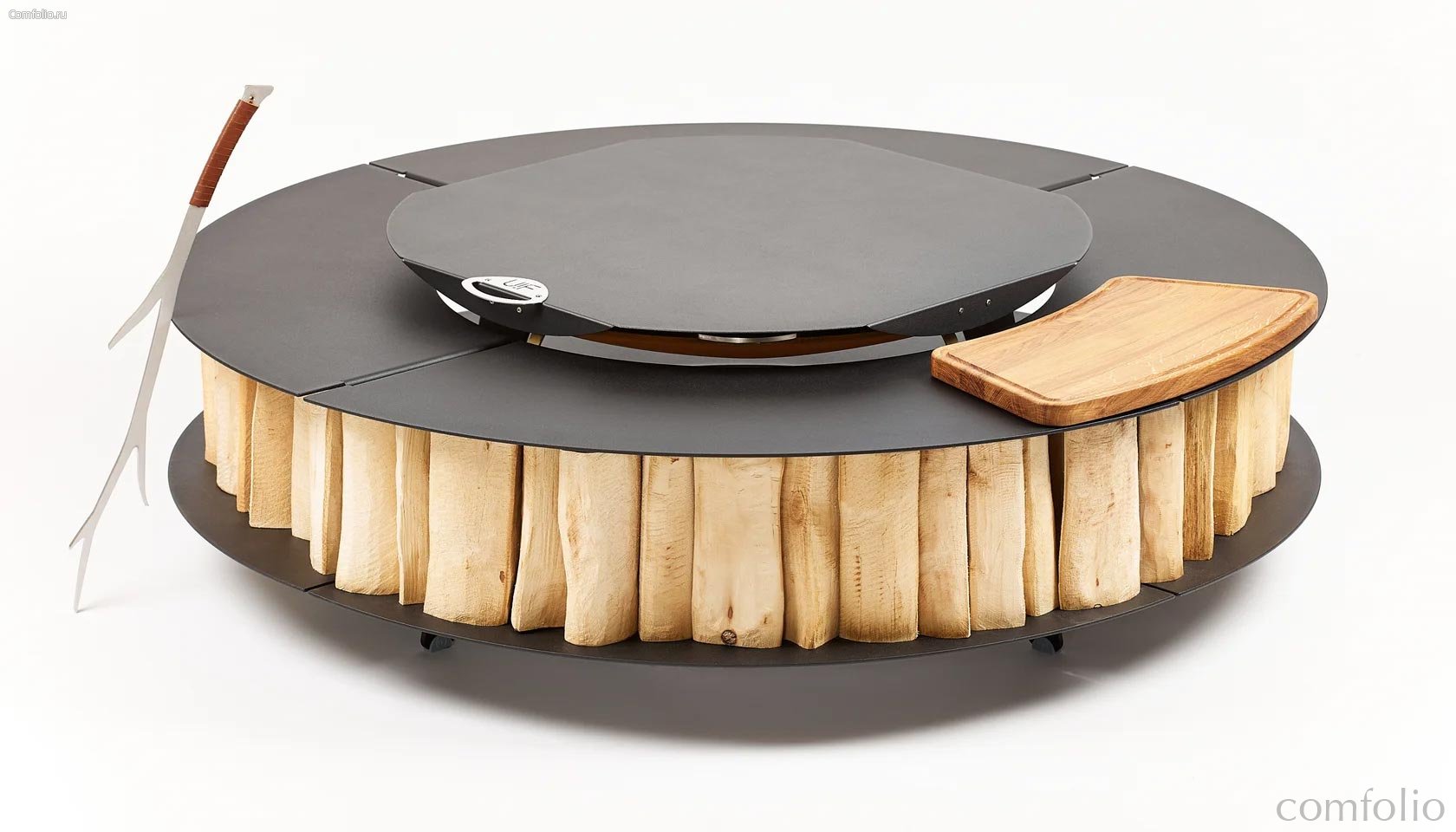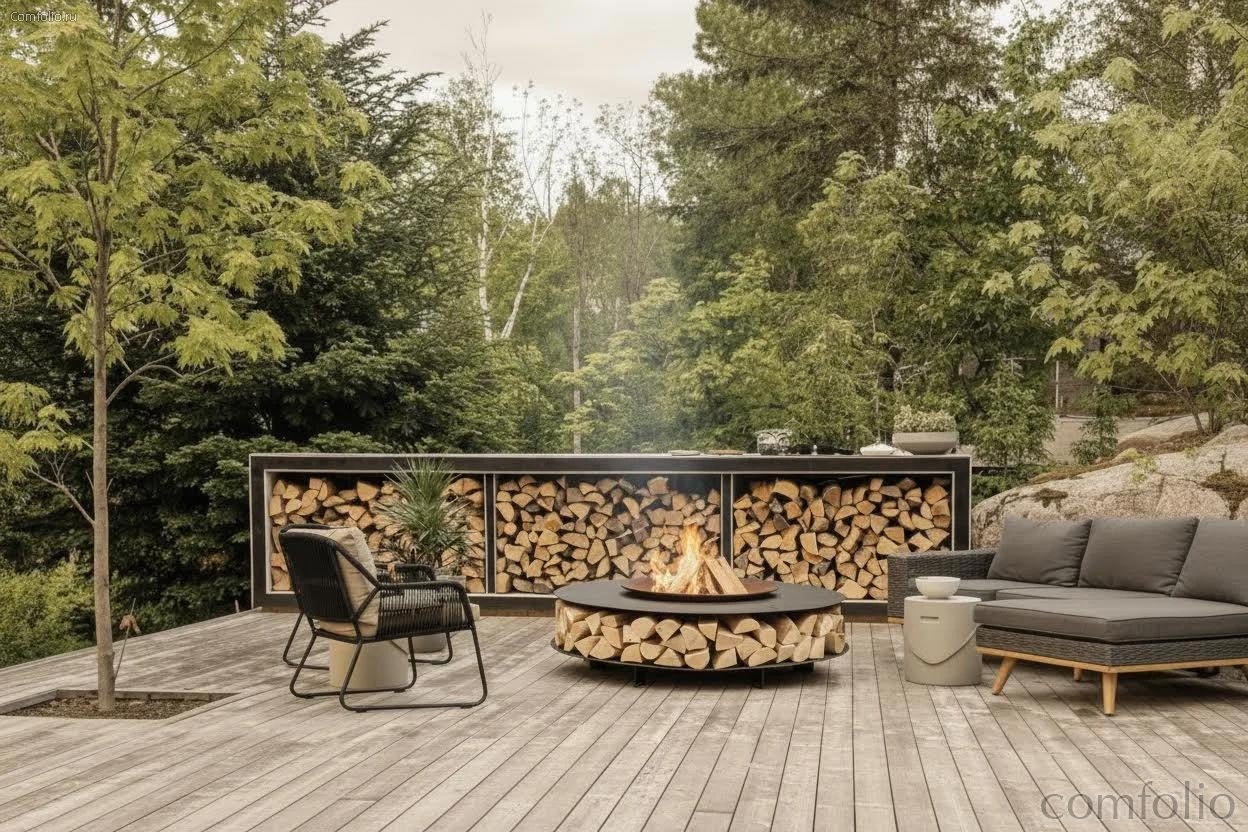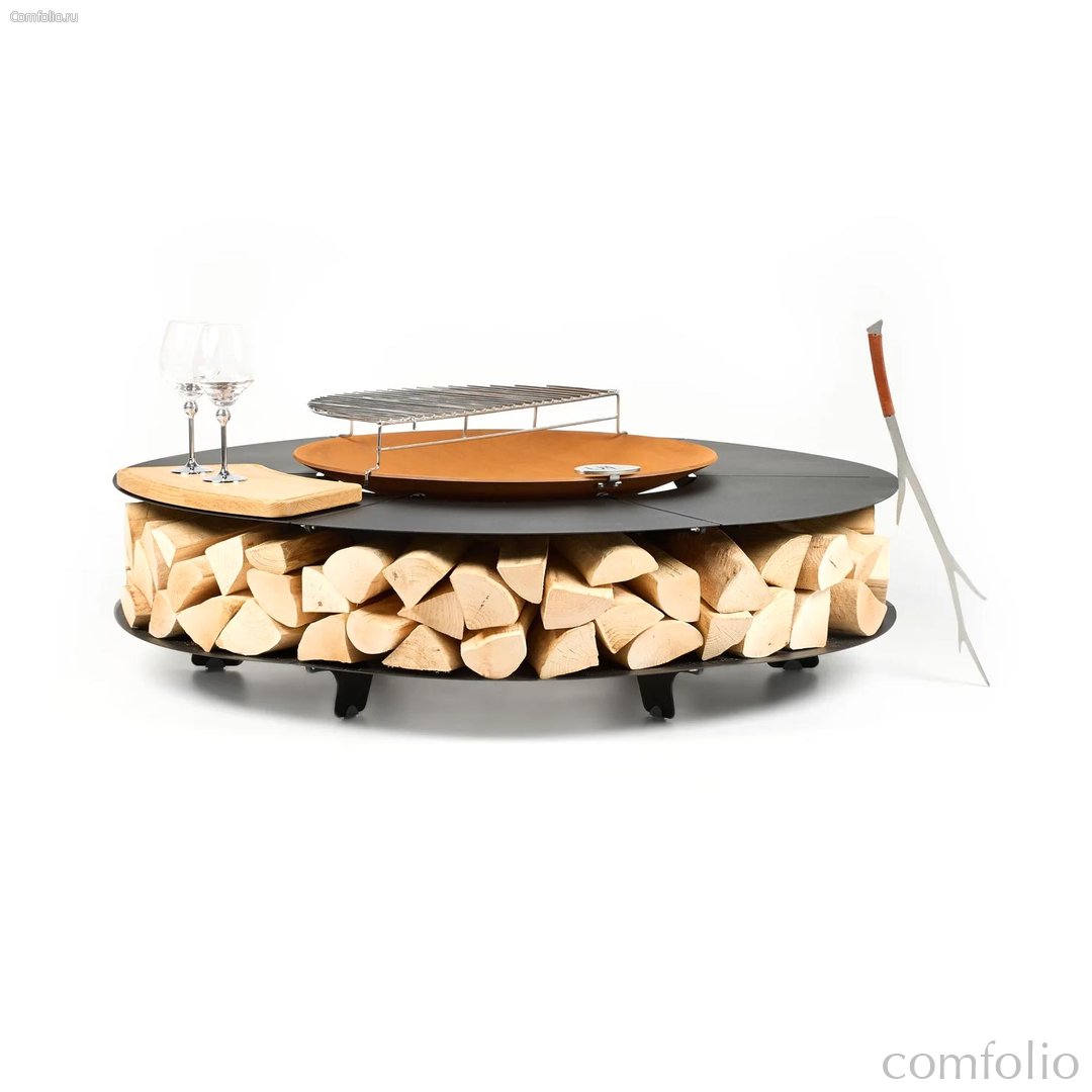 Серия Lounge совмещает функции очага, стола для общения и системы хранения дров. Такой формат органично вписывается в сады, террасы и лаунж-зоны, подчёркивая современную эстетику и создавая особую атмосферу, где каждый момент становится событием.