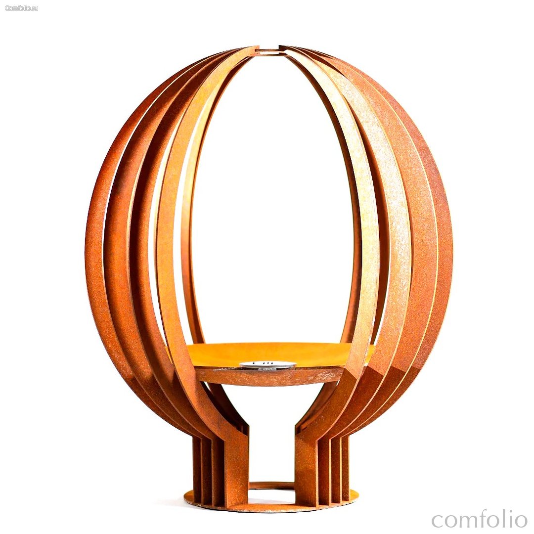 Очаг для костра большого размера Model A max oxi, изготовленный из оксидированной стали большой толщины - высота очага 1100 мм - ширина очага 1000 мм - толщина металла каркаса - 6 мм, толщина чаши - 6 мм - вес 73 кг