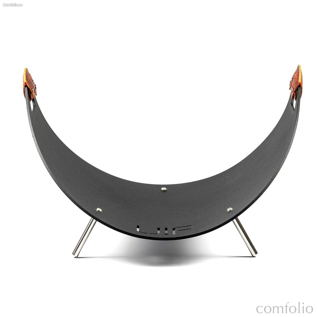 Всепогодная дровница Up!Flame Firewood Holder FL black, изготовленная из высокопрочной стали большой толщины со специальным тройным антикоррозионным покрытием Up!Flame Protection для использования внутри помещений и на открытом воздухе. Опоры из нержавеющей стали. Ручки из толстой натуральной кожи.