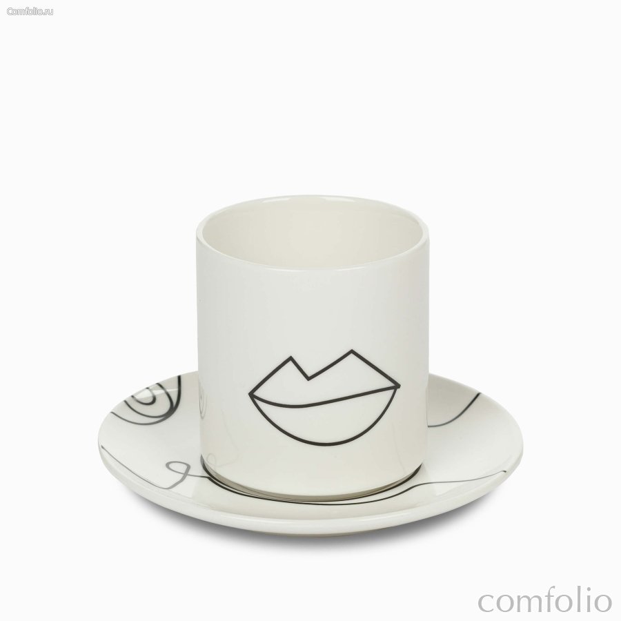 Чайная пара Mouth Cup, белая/чёрная - Cosmo