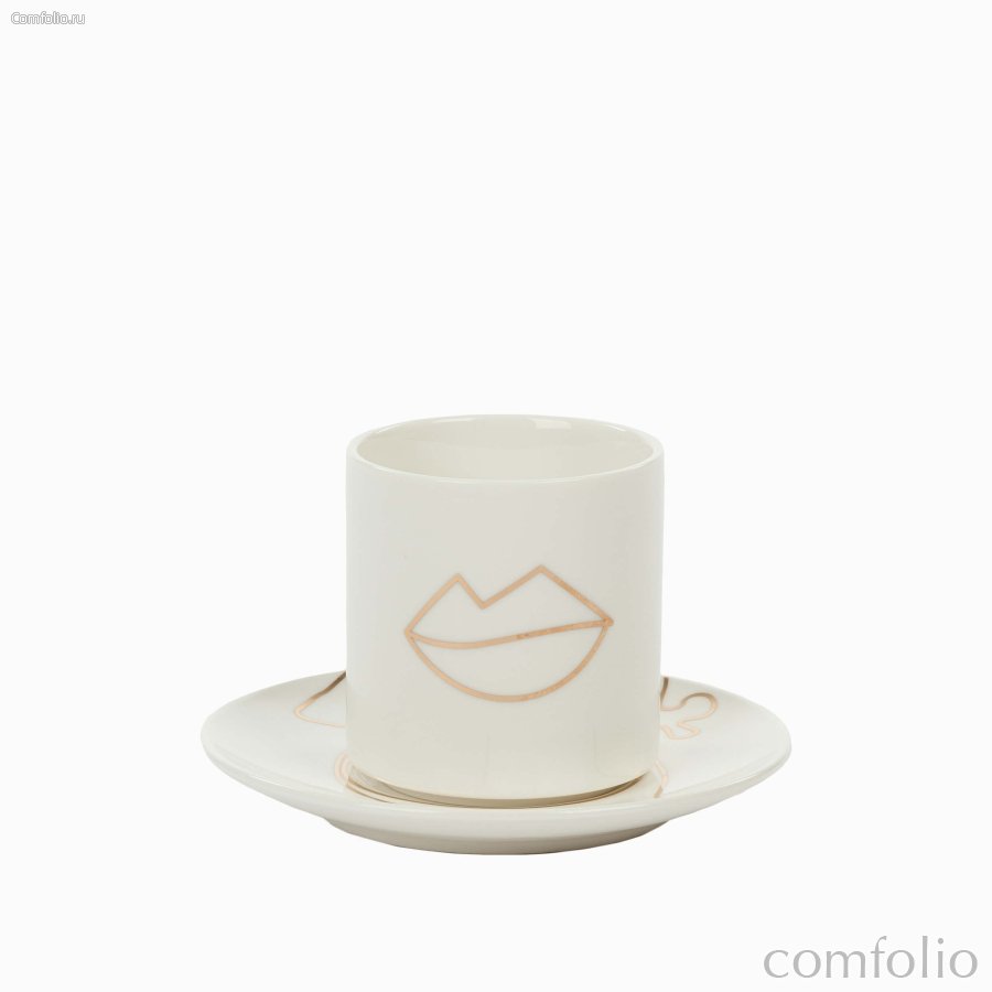 Чайная пара Mouth Cup, белая/золотая - Cosmo