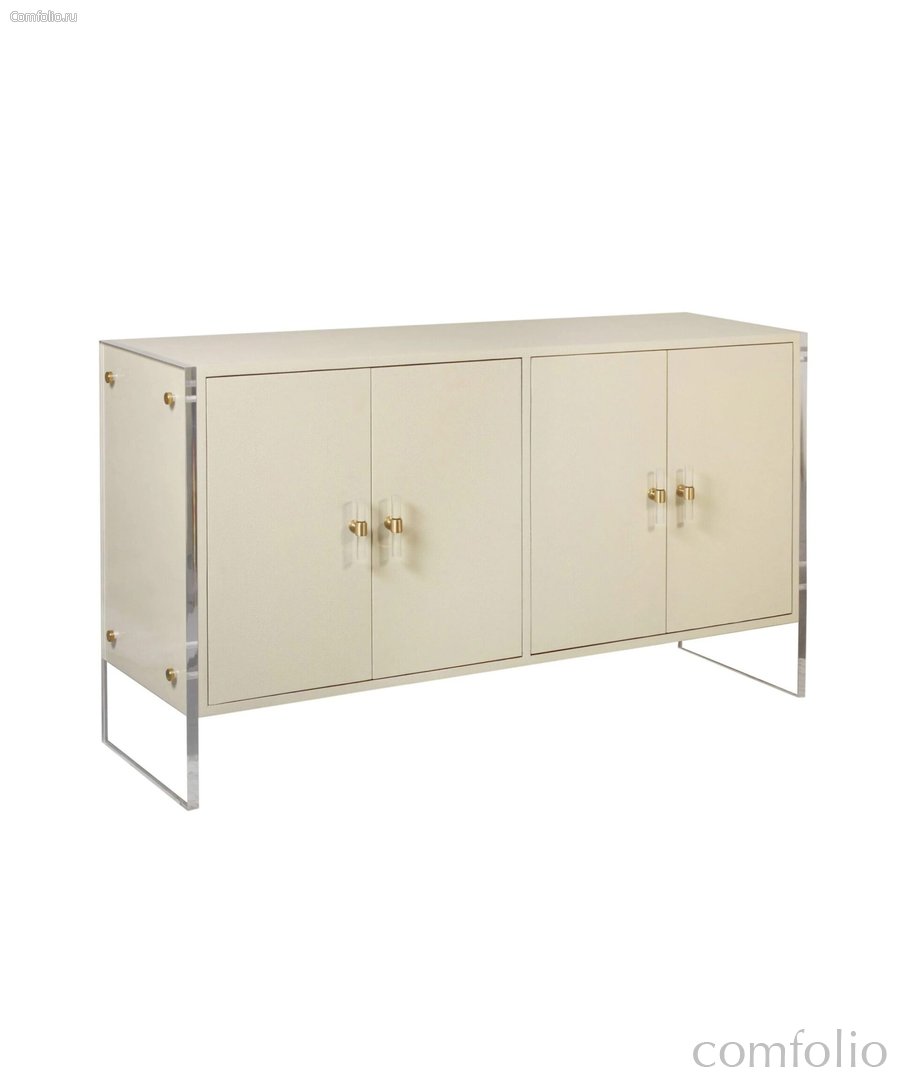 Бежевый комод "Берк" из шагреневой кожи с акриловыми ножками — это предмет интерьера, который сочетает в себе элегантность и современность. Обтянутый шагреневой кожей в мягком бежевом оттенке, он выглядит утончённо и стильно. Прозрачные акриловые боковые панели и ножки придают комоду визуальную лёгкость и современный вид, а фурнитура с золотистыми акцентами добавляет роскоши. Четыре дверцы с удобными ручками из акрила и латуни открываются к вместительным отделениям, идеально подходящим для хранения посуды, текстиля или личных вещей. Такой комод станет прекрасным акцентом в гостиной, спальне или холле, гармонично вписываясь в интерьер в стиле ар-деко, модерн или неоклассика.