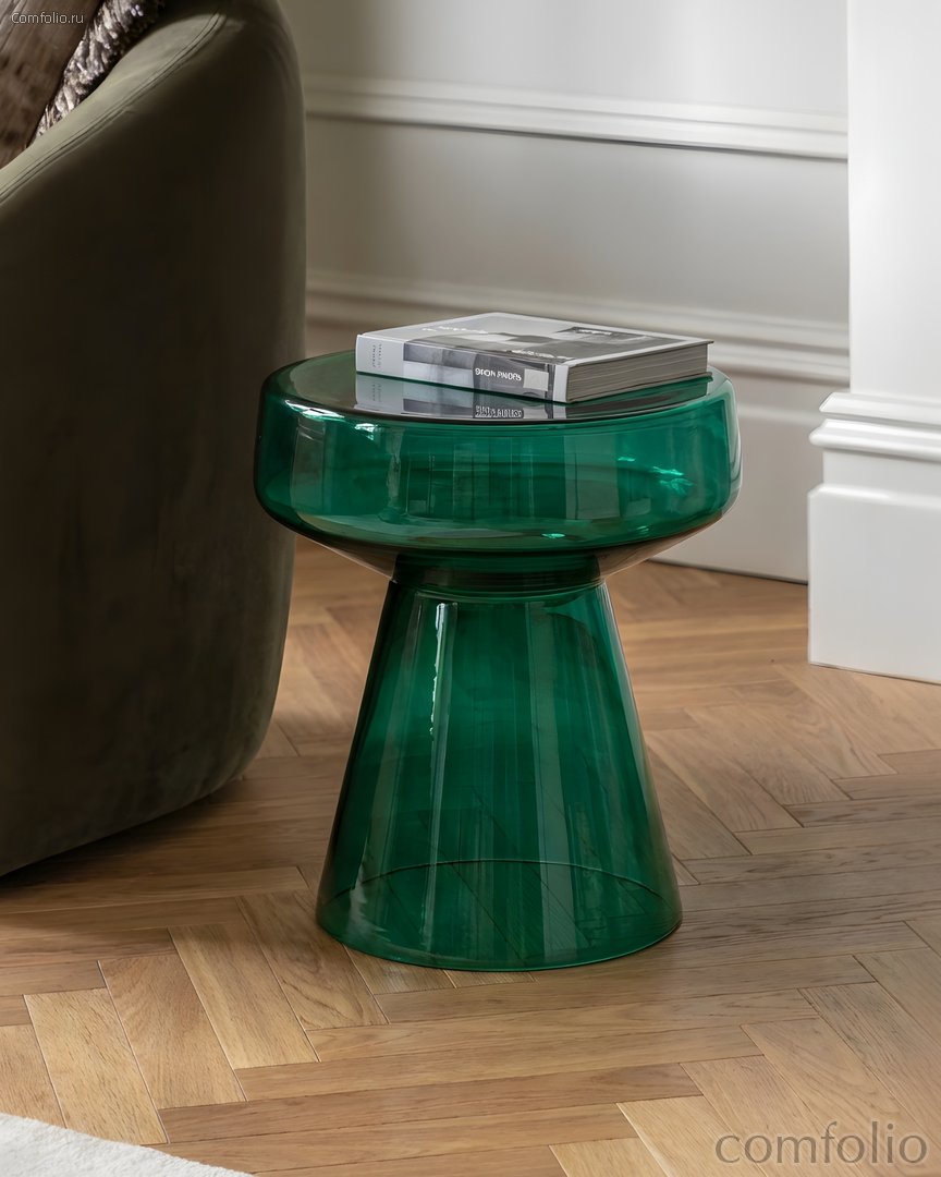 Тёмно-зелёный приставной столик «Флумс» Ø 37 см — это эффектный интерьерный акцент, в котором сочетаются современный дизайн и визуальная лёгкость. Глубокий зелёный оттенок стекла придаёт модели выразительность и благородство, а прозрачная столешница создаёт ощущение объёма и воздушности. Благодаря компактному диаметру столик удобно использовать рядом с диваном, креслом или кроватью. На нём легко разместятся телефон, книга, декоративный светильник, ваза или другие необходимые мелочи. Скульптурная форма с расширяющейся опорой делает «Флумс» не только функциональным предметом, но и самостоятельным элементом декора. Столик гармонично впишется в современные интерьеры — от минимализма и soft contemporary до эклектики, добавляя пространству глубину цвета и стильный характер. Практичный, устойчивый и визуально запоминающийся, «Флумс» станет акцентной деталью, подчёркивающей вкус и индивидуальность интерьера.