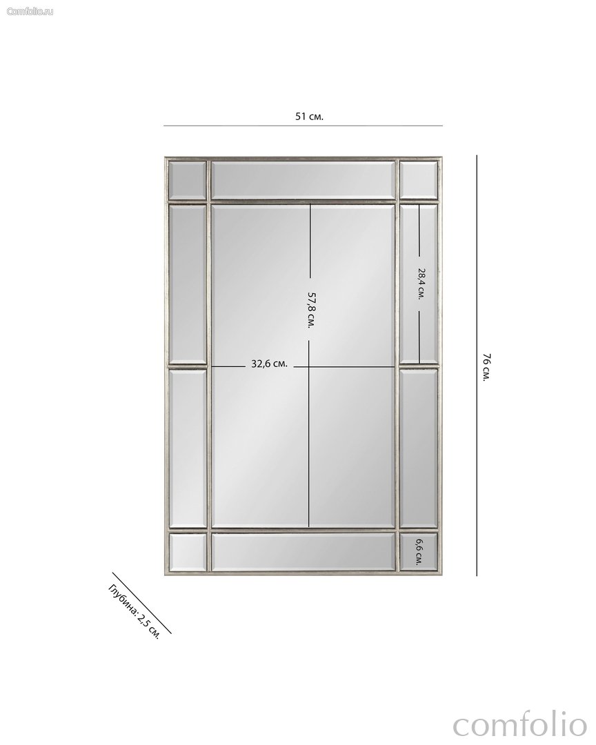 Зеркало в серебряной раме "Триест" - это изысканное и стильное дополнение к любому интерьеру. Сочетание элегантности, практичности и функциональности делает это зеркало идеальным выбором для вашего дома. Ее разделяющая отделка и элегантный дизайн позволяют легко интегрировать зеркало в любое стилистическое решение интерьера. Благородный серебряный цвет рамы подчеркнет ваш вкус и станет ярким акцентом в любом помещении. Строгая прямоугольная форма в сочетании с прямоугольными зеркальными элементами по периметру, создают визуальную интригу, притягивая взгляд и придавая пространству свет и объем. Это зеркало не только функциональный предмет, но и стильный декор, который преобразит ваш интерьер и добавит ему особую атмосферу уюта и комфорта. Особенность зеркала "Триест" заключается в его универсальности. Оно может быть установлено как вертикально, так и горизонтально в зависимости от вашего предпочтения и особенностей помещения. Это стильное и функциональное настенное зеркало "Триест" не только отражает изображение, но и создает атмосферу гармонии и уюта в вашем доме!