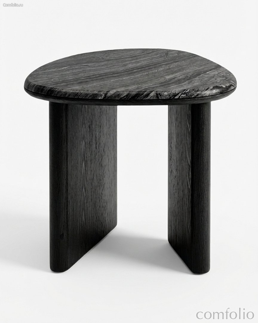 Приставной столик "Эктор" отличается выразительным и лаконичным дизайном. Глубокий тёмный оттенок делает модель универсальной и позволяет легко вписать её как в современный минималистичный интерьер, так и в более камерные, атмосферные пространства. Компактные размеры позволяют использовать столик в качестве акцентного элемента рядом с креслом или диваном. Он сочетает в себе функциональность, выразительность и скульптурную эстетику.